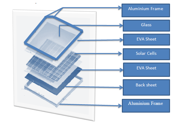 The following are the parts of a solar panel, from top to bottom: