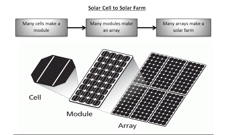 Summary: Solar panels that you see in rooftops and large solar farms are an assembly of many solar cells.